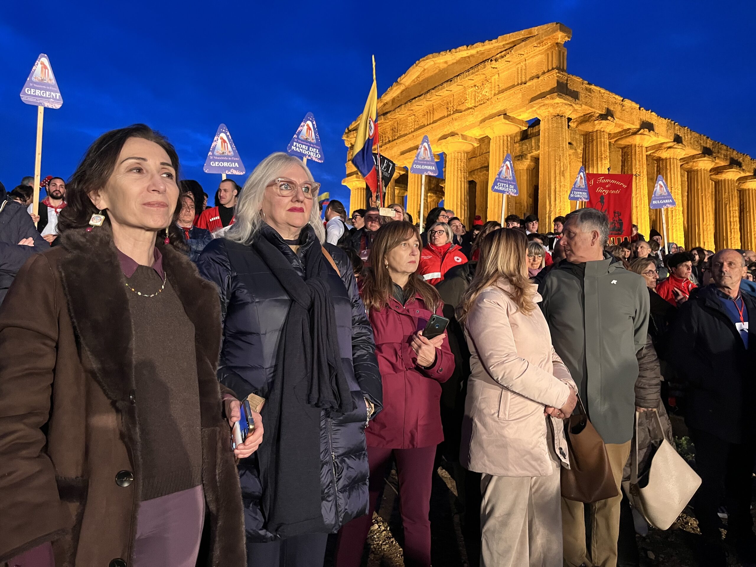 E’ stato acceso, ieri sera, al Tempio della Concordia, dopo il rinvio a causa del maltempo, il Tripode dell’Amicizia, simbolo dei valori della pace e dell’unione tra i popoli, temi conduttori della 78ª edizione del Mandorlo in Fiore, in programma ad Agrigento fino al prossimo 15 marzo,