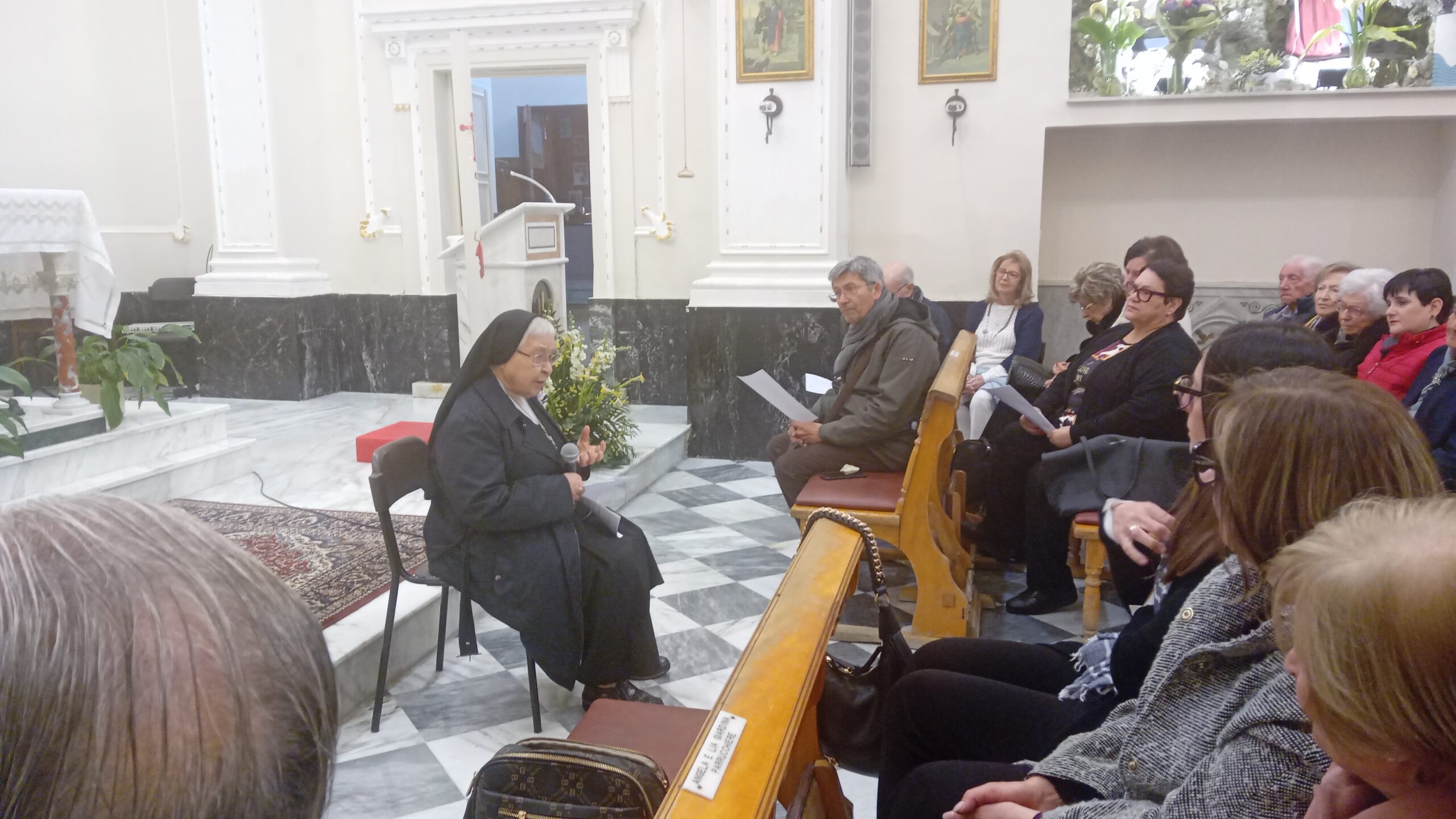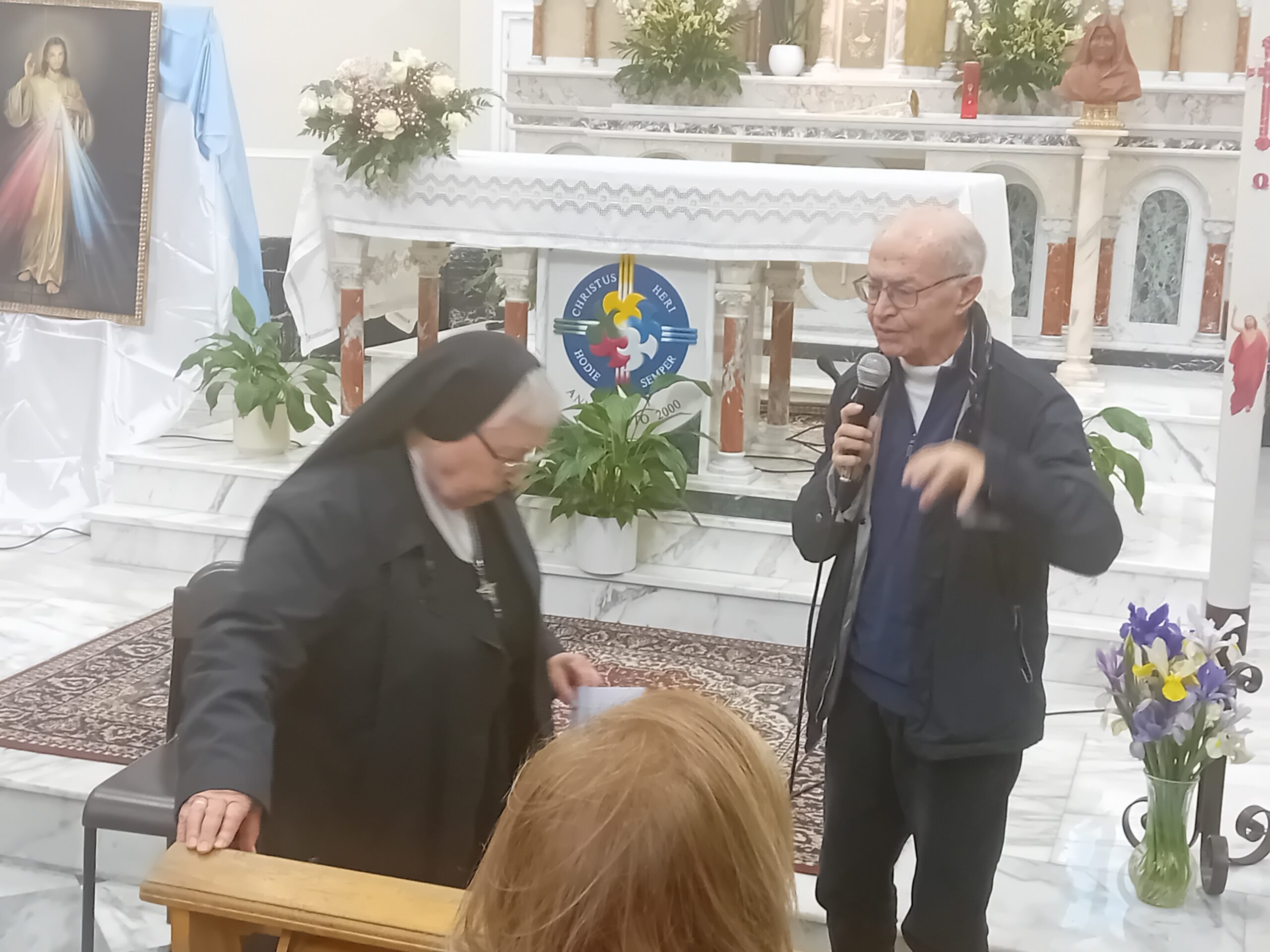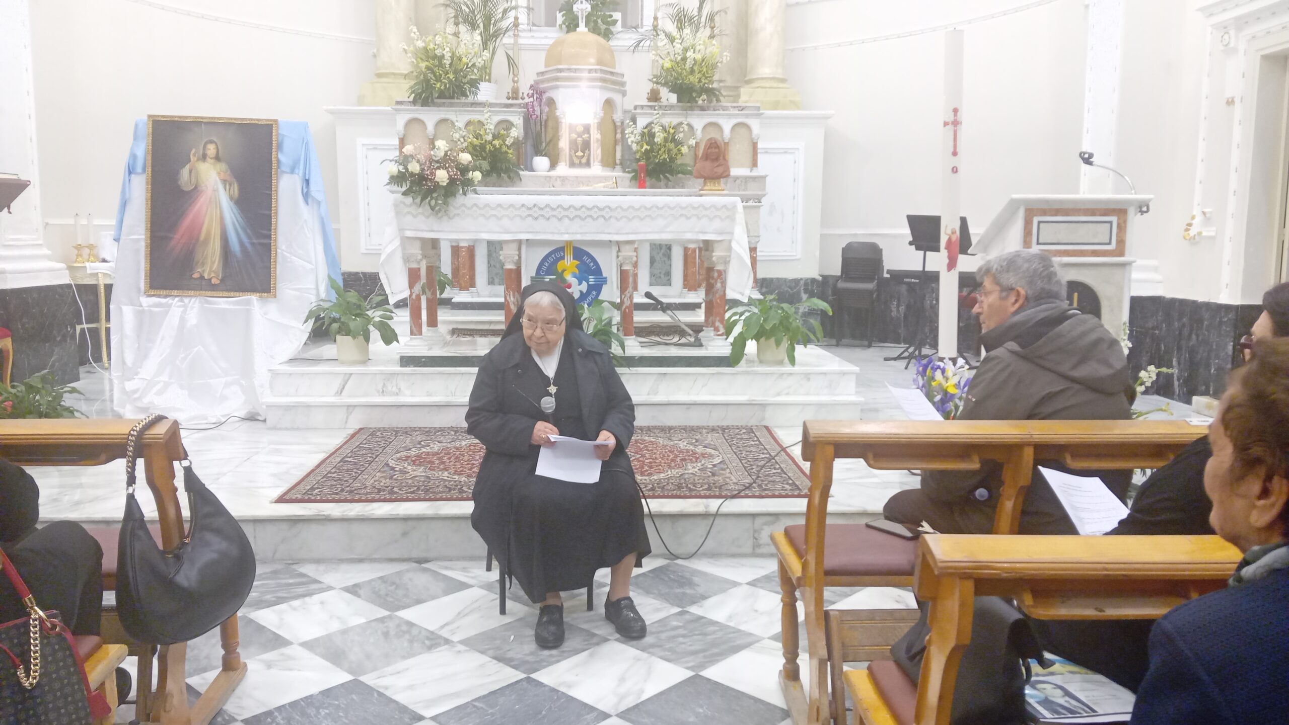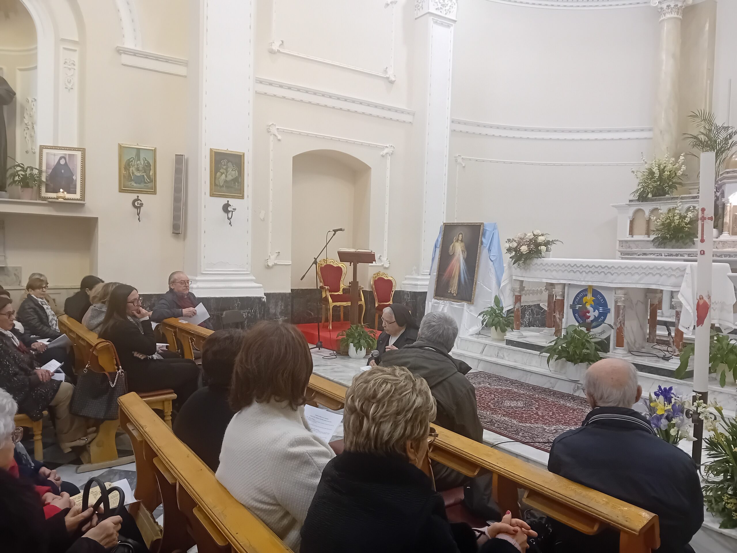 Subito dopo la messa, nel giorno della festa della Divina Misericordia, celebrata da don Calogero Statello, guida spirituale del gruppo da anni in cammino per aderire ufficialmente all’Associazione Laici Amore Misericordioso, suor Rifugio ha tenuto una catechesi ricca di spunti interessanti, soffermandosi sul carisma di madre Speranza e dell’Amore Misericordioso e condividendo con i numerosi presenti alcune esperienze vissute in prima persona quando viveva accanto a madre Speranza.